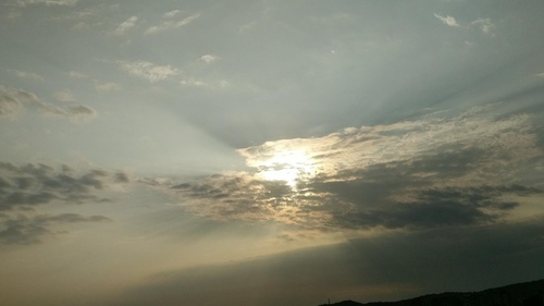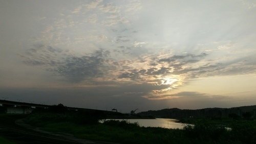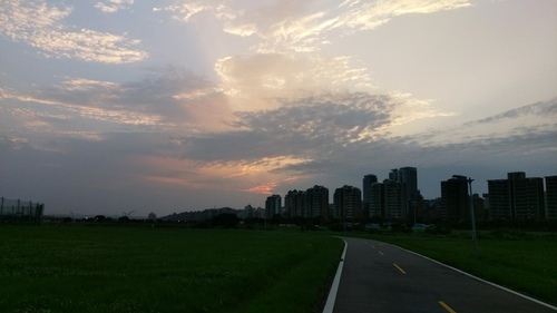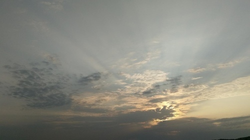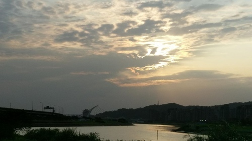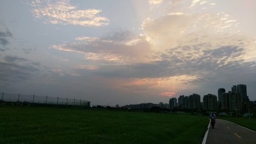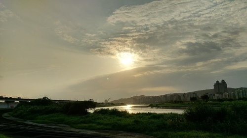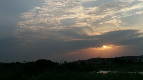 天氣不是很穩定 看起來 今天沒有夕陽可看了 突然有點光 有點興奮..... 以為這樣很精彩了 可以回家了 沒想到 在回家的路上 回頭一看 這時候紅色的夕陽居然出來了 美的讓人心驚膽跳 於是卡達車趕快又回頭..... 和朋友說 人生沒有很多須求 看個夕陽 就可高興一整晚
